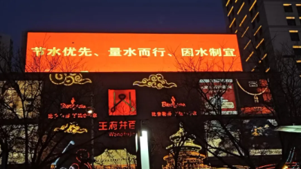 活动期间,王府井百货、大十字百货的户外大屏循环播放“节水优先 绿色发展 水润西宁”“节水中国行 水润千万家”等宣传标语,醒目的字样与地标建筑的现代气息相融合,吸引过往市民纷纷驻足观看。宣传标语紧扣今年“世界水日”宣传主题,既彰显了节水优先的国策导向和绿色发展的时代要求,又传递出节水行动惠及千家万户的民生温度,将水资源保护的重要意义以简洁有力的方式传递给广大市民。地标建筑化身为节水宣传的“流动窗口”,将节水理念融入城市公共空间,让市民在出行途中、购物之余潜移默化地接受节水教育,实现宣传效果与城市景观的有机统一。