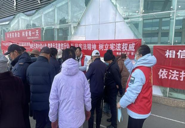 南门体育场活动现场氛围热烈,工作人员通过悬挂宣传横幅、发放普法资料、小礼品等形式,向过往群众和早市从业人员广泛宣传宪法知识。“您好,12月4日是国家宪法日,了解一下宪法知识,更好地保护自身权益。”“如果您在生活中遇到法律问题,可以通过以下途径寻求帮助……”工作人员用通俗易懂的语言向辖区居民讲解宪法赋予公民的权利与义务,并围绕防范电信诈骗、化解矛盾纠纷等贴近生活的法律知识,让居民深刻理解宪法与自身息息相关。提升了他们的法律知识水平。
