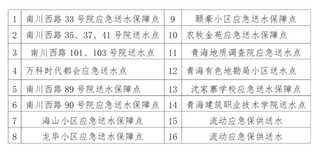 5、为了保障停水区域内用户基本生活需求,我公司将设立固定送水点。(附:送水点明细表)