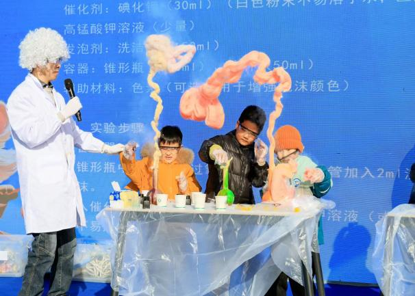 此次冰雪科学实验秀内容丰富多元、形式新颖别致,宇树机器狗全程参与互动展演,活动开场萌趣亮相、实验环节趣味配合,灵活的动作与智能的互动瞬间点燃现场氛围。活动现场依次开展点水成冰、气体喷发、大象牙膏、马德堡半球、等离子大炮五大核心实验。点水成冰实验聚焦醋酸钠过饱和溶液结晶现象,生动演示“热冰”形成的神奇科学原理;气体喷发实验借助过氧化氢与高锰酸钾催化反应,直观呈现气泡迸发、色彩变幻及温度上升的多重视觉与体感效果;大象牙膏实验利用过氧化氢分解产生氧气,搭配洗洁精形成壮观泡沫喷发景象;马德堡半球实验清晰验证大气压强存在,阐释气体压强与体积的紧密关联;等离子大炮实验精彩展现火焰特殊形态与能量转化的科学奥秘。实验演示生动鲜活,讲解内容深入浅出,让现场观众近距离感受科学魅力,有效激发大众探索科学奥秘的浓厚热情。此次活动将硬核科普知识巧妙融入冰雪休闲文旅场景,既丰富了城中区冬季文旅产品供给,又以群众喜闻乐见的方式普及科学知识,显著提升了活动吸引力与群众参与度,为城中区冬季文旅市场注入科普新活力。