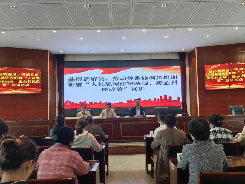 为持续优化营商环境,提升基层劳动关系矛盾纠纷调解水平,进一步加大人社领域惠企利民政策宣讲力度,打通政策宣传“最后一公里”。近日,城中区人社局组织开展基层调解员、劳动关系协调员培训班暨“人社领域法律法规、惠企利民政策”宣讲活动,辖区各类用人单位、企业劳动关系协调员、各镇办基层调解员共计100余人参加。