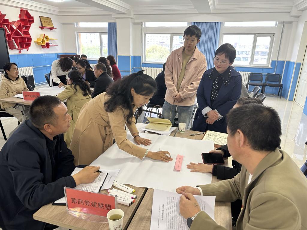 破堵点、聚合力,激活学校基层治理动能。五个校际联盟结合实际展示讨论结果,形式新颖、氛围活跃,以深入推进党建与教育融合发展为关键点,表观点、列措施,既找到“差距”,也取到“真经”,更凝聚起了“抓党建、强教育”的发展共识。此次交流互动,在校际经验交流基础上,创新学校党建工作新路径,为深化党员队伍建设,探索党建工作与教育教学工作互融共促,推动学校党建基层治理提供了意见建议。