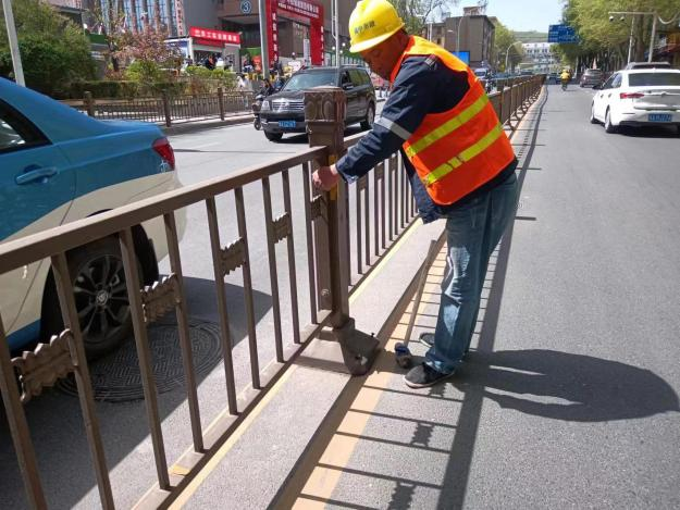 务实功,加大市政道路设施维护,提升道路安全性能。为有效防范化解道路安全风险,营造畅通舒美的道路通行环境,区市政公用服务中心组织人员对辖区主要道路中央隔离栏、人行道护栏进行全面排查整治,针对护栏脱落、倾斜、松动等存在安全隐患及时进行维修维护,及时消除安全隐患,保障辖区车辆出行安全,截止目前维修护栏130米。
