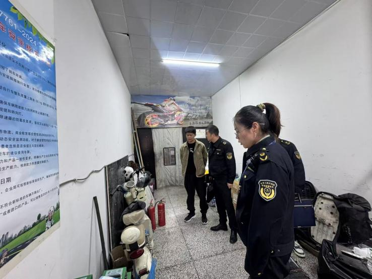 聚焦关键环节精准排查除险。执法人员对辖区5家电动自行车销售门店、租赁网点及维修店铺开展全覆盖、无死角排查。重点核查经营户营业执照资质有效性,细致比对在售车辆3C认证证书与车型、参数的一致性,严厉查处无证销售、证书造假、型号不符等违法经营行为;紧盯维修环节违规操作,严查擅自改装电池电压、解除限速装置、加装电池仓等问题,坚决遏制非法改装带来的安全隐患。同时,核查经营户进货查验制度落实情况,督促其规范建立完整购销台账,确保车辆来源可溯、质量可控,从源头筑牢产品质量安全第一道防线。
