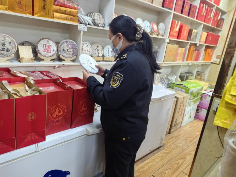 全面开展执法检查,严把茶叶质量关。在个案查处的基础上,执法人员举一反三,将监管范围从被投诉商户扩展至全区茶叶专卖店、商超专柜、茶楼、网络销售平台等各类经营主体,围绕经营资质、进货渠道、明码标价、包装合规性与标签标识等方面,严格核查店铺证照是否齐全、进货查验制度是否落实,重点检查是否存在价格欺诈、过度包装以及标签违规使用“极品”“精品”等误导性字样或非法宣称保健功效等行为。同时,对“边销茶”的产品标签与贮存条件进行专项查验,督促经营者把好进货关、落实主体责任。此次共检查经营单位29户,未发现价格违法及虚假宣传问题,对其中6户存在散装食品标识卡填写不规范、台账记录不完整等情况的经营者,执法人员已现场责令并监督整改到位。