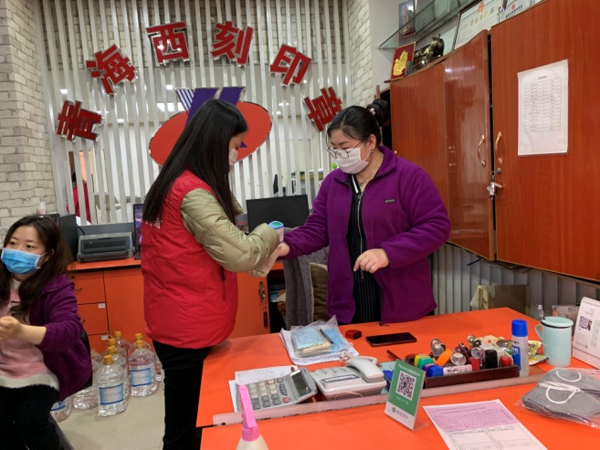 送服务上门,当好企业复工的“服务员”。更好地为企业复工复产提供服务,街道专门组织一支“党员志愿者服务队”,上门为企业答疑解惑、测温消毒,指导企业分批次复工复产。在西刻印章党支部经营门店,街道党员志愿者们积极为企业员工测量体温,帮忙开展卫生大扫除活动,对经营场所卫生死角进行全面清扫和喷洒消毒液,阻断病毒传播途径,为企业复工复产营造干净整洁的卫生环境。在水井巷实业发展有限公司党支部志愿者们当起了宣传员,为公司员工解读国家及省市区委复工复产的政策精神,引导辖区“两新”党组织有效发挥党建引领,落实相关复工规定。