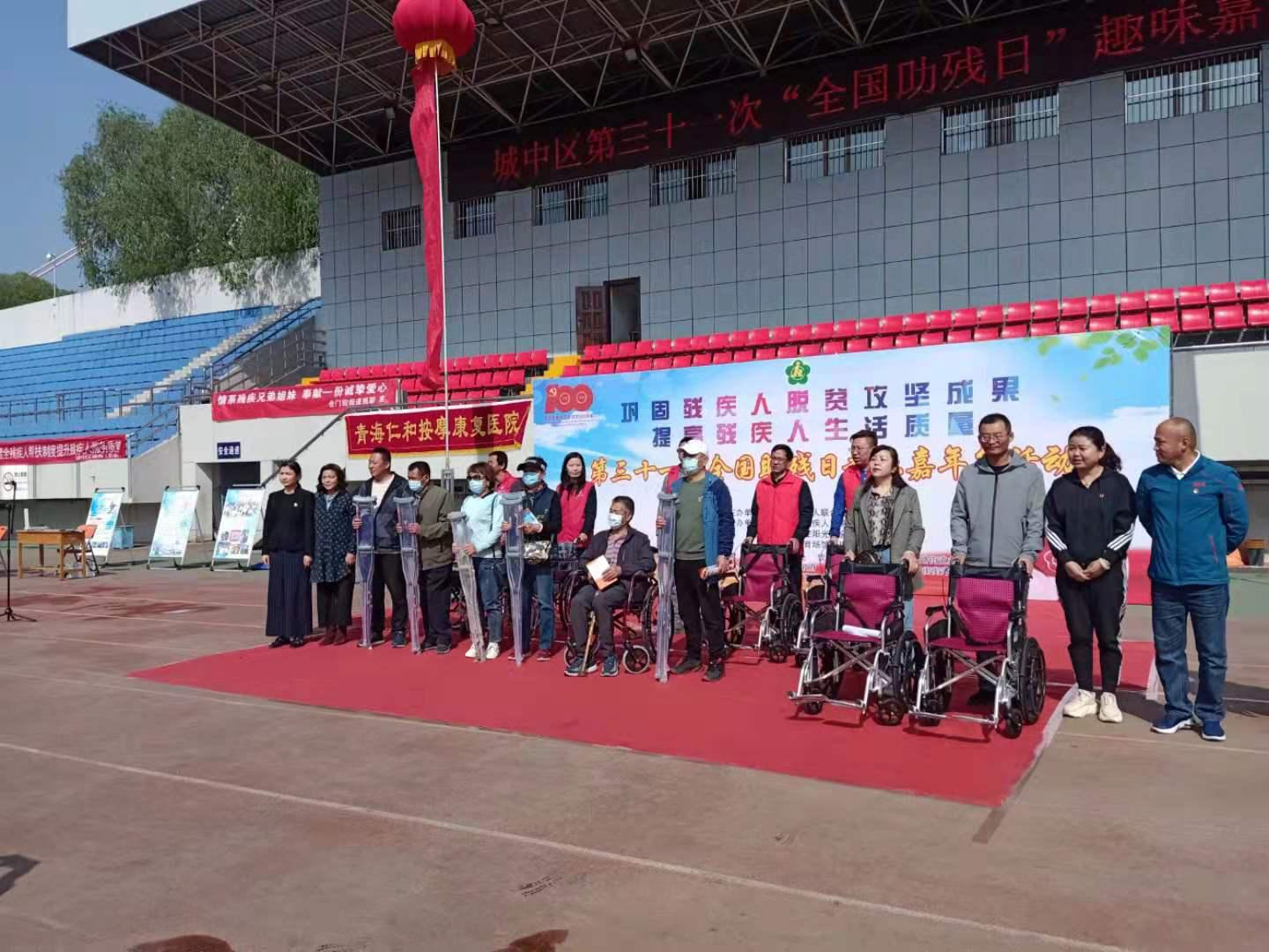 活动开幕式上,城中区残联马春花理事长致开幕词宣布运动会正式开始,现场给困难残疾人发放了慰问金。给行动不便的残疾人发放了助行器具,给视力残疾人发放了盲杖解决了残疾人的生活困难,让残疾人的生活可以更方便一些。