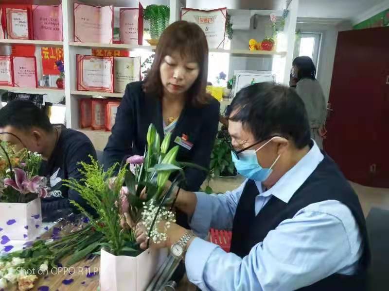 社会组织的老师和社区的志愿者们为每位学员准备了一套插花道具。爱在阳光社会组织的插花老师从层次感、色彩搭配、捆扎包装等方面为大家讲解插花知识,并进行现场示范。在老师和志愿者们的指导下,残疾人朋友们小心翼翼地摆弄着手里的鲜花。居民毛延奎因视力残疾无法单独完成插花作品,但在社区书记的帮助下,终于制作出一盆精美的插花。经过一系列操作,一盆盆形态各异的插花作品呈现在大家面前。大家看着自己亲手制作的插花作品,露出了灿烂的笑容,纷纷抱着自己的作品拍照留念,记录下了最美的瞬间。为了表达对党的热爱,对社区和社会组织的感谢,毛延奎代表现场参加活动的残疾人即兴高歌一曲,得到了大家热烈的掌声!