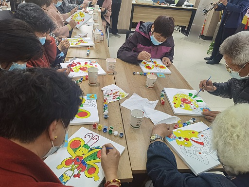 共享“幸福”金秋。社区党委积极挖掘节日文化内涵,开展创意绘画活动,让老人感受到了欢乐祥和的节日氛围。活动中,老人们兴致勃勃挥笔作画,充分发挥自己的想象力和创造力,绘制出一幅幅“得意”之作。老人们交换画作欣赏、相互点评,并纷纷表示:“我们特别喜欢这样的活动,不仅有趣,还让我们交到了志同道合的朋友!”活动现场的另一边,科尼造型护肤馆的志愿者们细心为老人们系上围布,在与老人们沟通交流后,剪出各自满意的发型。“有时我到理发店,遇到人多的时候,基本没人愿意给我理发。没想到今天在社区就能理发。小伙还问我喜欢什么风格的发型,社区真是太贴心了!”王师傅高兴地说道。