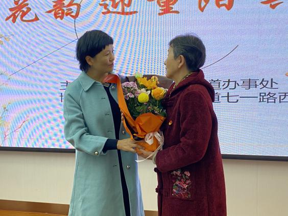 借重阳节来临之际,礼让街街道人大代表工作委员会和政协委员联络组组织14名人大代表和政协委员,在七一路西社区为辖区独居老人、困难老人、退役军人、网格党员34人共同开展了“赏花韵迎重阳共敬老”重阳节主题活动。