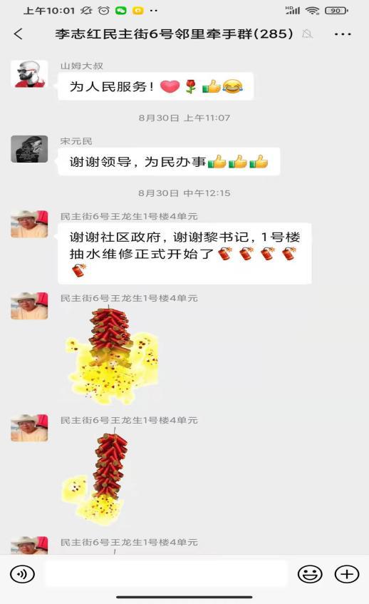 在老旧楼院综合改造中更换窗户、外墙保温、屋顶防水,谁家窗户安装有问题等居民们第一时间在微信群里反映,社区工作人员将问题进行登记,联系施工方对居民反应的问题进行解决。