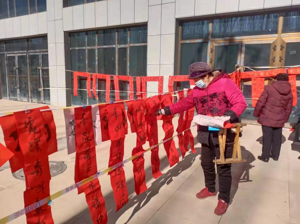 “张阿姨,快点走,社区开展写春联活动呢,大年三十贴上多喜庆啊……”海山小广场在冬日的暖阳中显得格外热闹,文广局书法家协会的艺术家们以及辖区热爱书法绘画的居民和青少年现场笔墨寄情,在喜庆的大红纸上书写着自己的衷心祝福,浓浓的年味跃然纸上,往来的居民们驻足欣赏书法创作,品评春联寓意。书法家们把书写好的一幅幅充满春意、歌颂和谐社会与祥和喜庆的春联一一送到辖区居民手中,现场的居民脸上洋溢着满满的幸福,感受着别样的温暖。
