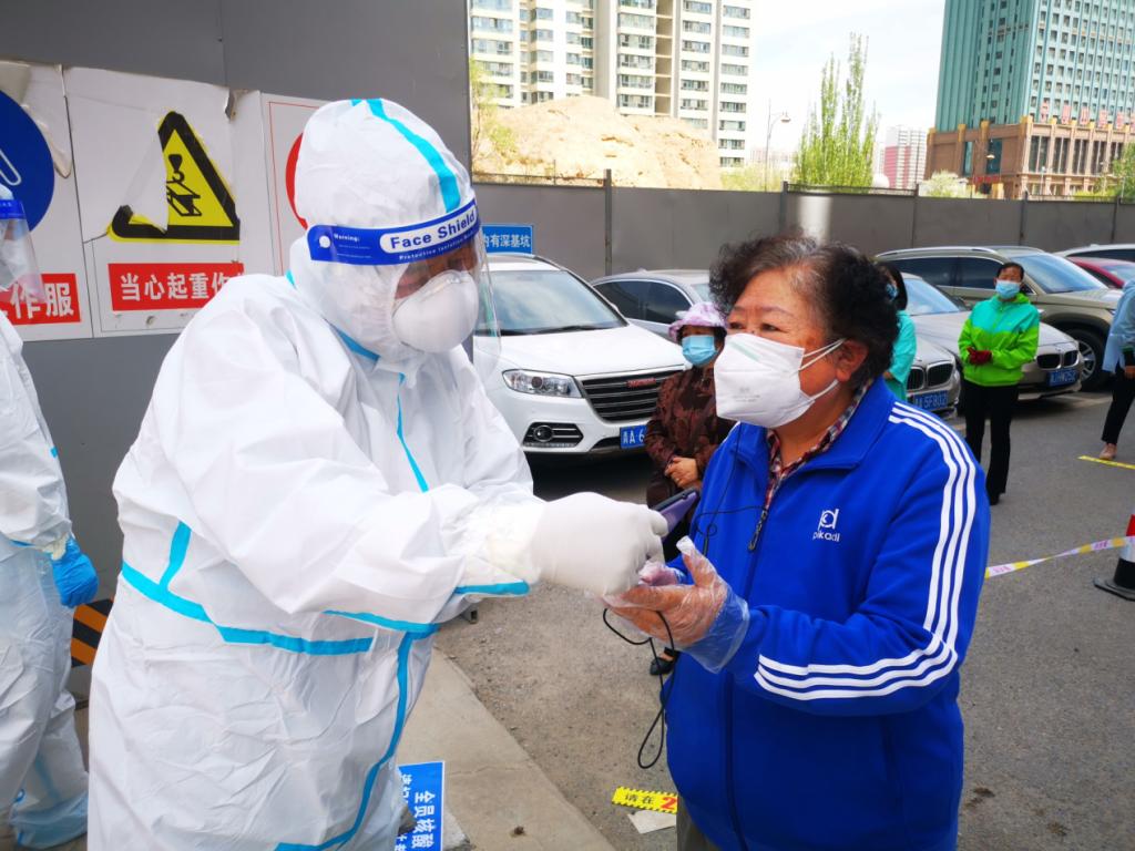 在核酸检测过程中,他们有的负责维持核酸检测队伍秩序,提醒居民佩戴口罩、保持前后间隔2米距离;有的帮助居民扫身份证,检验双码;有的作为爱心通道的指引者,帮助老人、孩子迅速完成核酸检测。除此之外,还有默默留守在办公区域的信息核对工作人员,登记录入来宁返宁信息,核对居民信息,为居民答疑解惑……