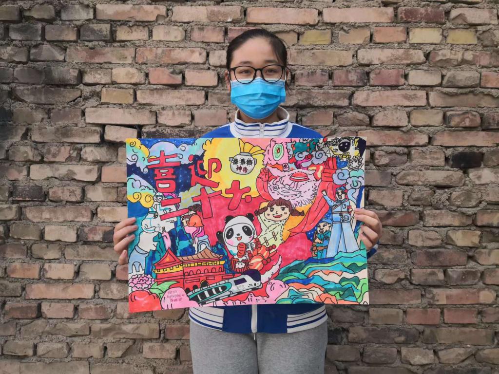 农建巷15号居民姜满花看到农建社区邻里群转发的“线上‘云’征集书画作品活动”通知后,就鼓励孩子们积极参加。自疫情以来,两个孩子一直在家上网课,暂时没办法和同学见面,她则在农建社区当志愿者快一个月没回家了,孩子们的心里难免觉得空落落的,于是她将这个消息告诉了爱画画孩子们。孩子们很开心地报名,每天在上完网课后,就围坐在一起选素材,一笔一划地完成了此次参赛作品。党旗、5G、宇宙飞船、冰墩墩、绿码等组成了一幅幅反映祖国的科技、体育、健康、人民的团结、祖国的繁荣的美丽画卷。此次征集到的图画紧紧围绕“少年儿童心向党”这一主题,结合自身所看、所听、所思、所想,展示了新时代下少年儿童心系祖国,歌颂伟大的党、伟大的祖国、伟大的人民,对美好未来的期盼和展望。同时,通过绘画不仅仅缓解疫情期间孩子们紧张情绪,也让他们在比赛中获得了乐趣。