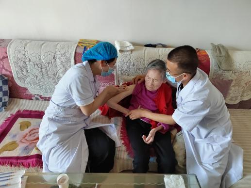 送“苗”上门,接种不漏到位。为方便群众接种,最大程度压缩群众疫苗接种的时间、成本,社区(村)设立流动接种点,由街道领导干部、沈家寨卫生院组携带疫苗至接种点进行接种,让疫苗多“跑路”,群众少跑腿。对于不便到接种点接种的,由医疗组带“苗”上门,在保障安全的前提下,经卫生院健康评估后提供上门接种服务,切实打通疫苗接种工作“最后一百米”,确保构建免疫屏障,力争做到“网格不漏户,户不漏人”。老年人纷纷表示一开始对疫苗接种处于观望和担心,通过在现场沈家寨卫生院医护人员工的耐心解读,细心的询问接种者的身体状况并告知疫苗接种后的注意事项,很大程度的消除了老年人的后顾之忧。