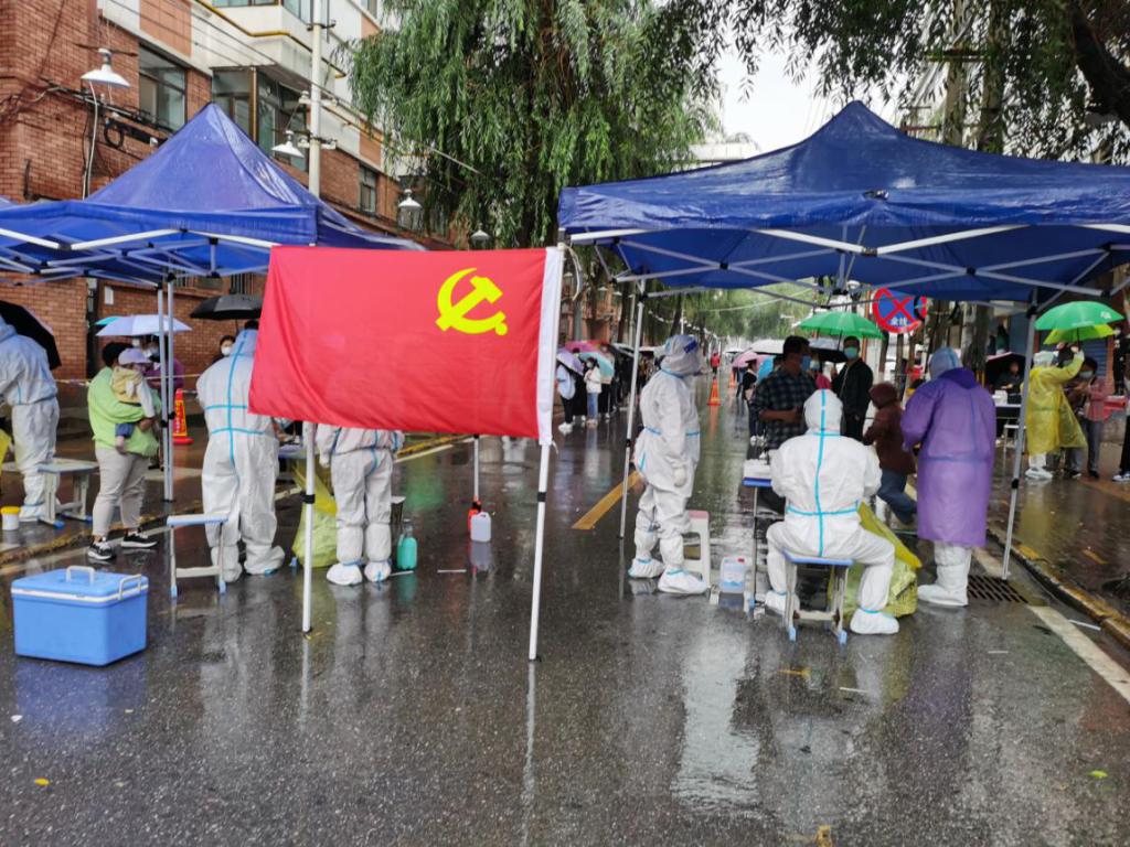 面对大雨,疫情防控一线的党员、共青团员和志愿者们“疫”往无前,在风雨中紧盯“防输入”重点环节,坚守在核酸检测取样点,用自己的辛苦付出,撑起“防疫伞”,守护着辖区居民群众的身体健康和生命安全。