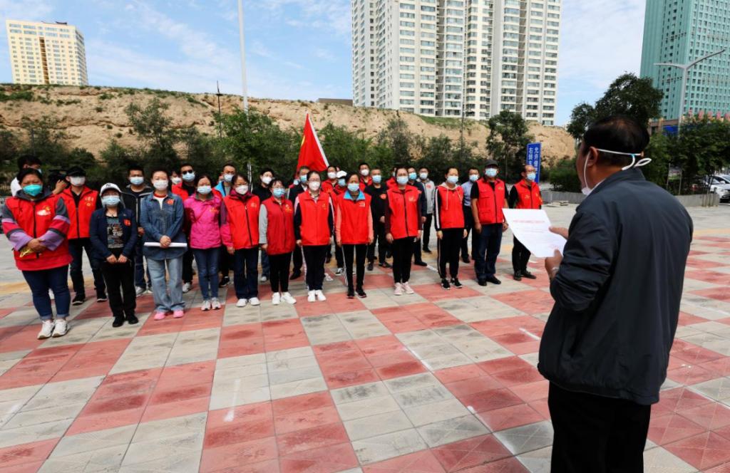 2022年9月1日,南山东社区党委举办“在职党员助力疫情防控临时党支部”成立仪式,34名居家在职党员按时集合、整齐列队、斗志昂扬,每名党员脸上洋溢着必胜信心,胸前“党员先锋”格外醒目,鲜艳的党旗迎风飘扬,彰显出抗击疫情的“硬核”力量。南滩街道办事处付军弢副主任宣读了成立临时党支部的批复,任命李积星为书记,朱青利为组织委员,郝玉宁为宣传委员。支部书记代表全体党员表示,党员在哪里,党组织就建到哪里,号召全体居家在职党员冲在前、打头阵,以抗疫一线党组织的战斗堡垒作用,让党旗在“疫”线高高飘扬;把辖区全体居家在职党员凝聚起来,充分发挥党员先锋模范作用,打造一支关键时刻靠得住、顶得上、战得胜的先锋队伍;坚持为民服务,组织党员做好核酸检测秩序维持、运送物资、楼院值守等工作,把党和政府的温暖及时送到人民心中,凝聚同心抗疫的强大合力。