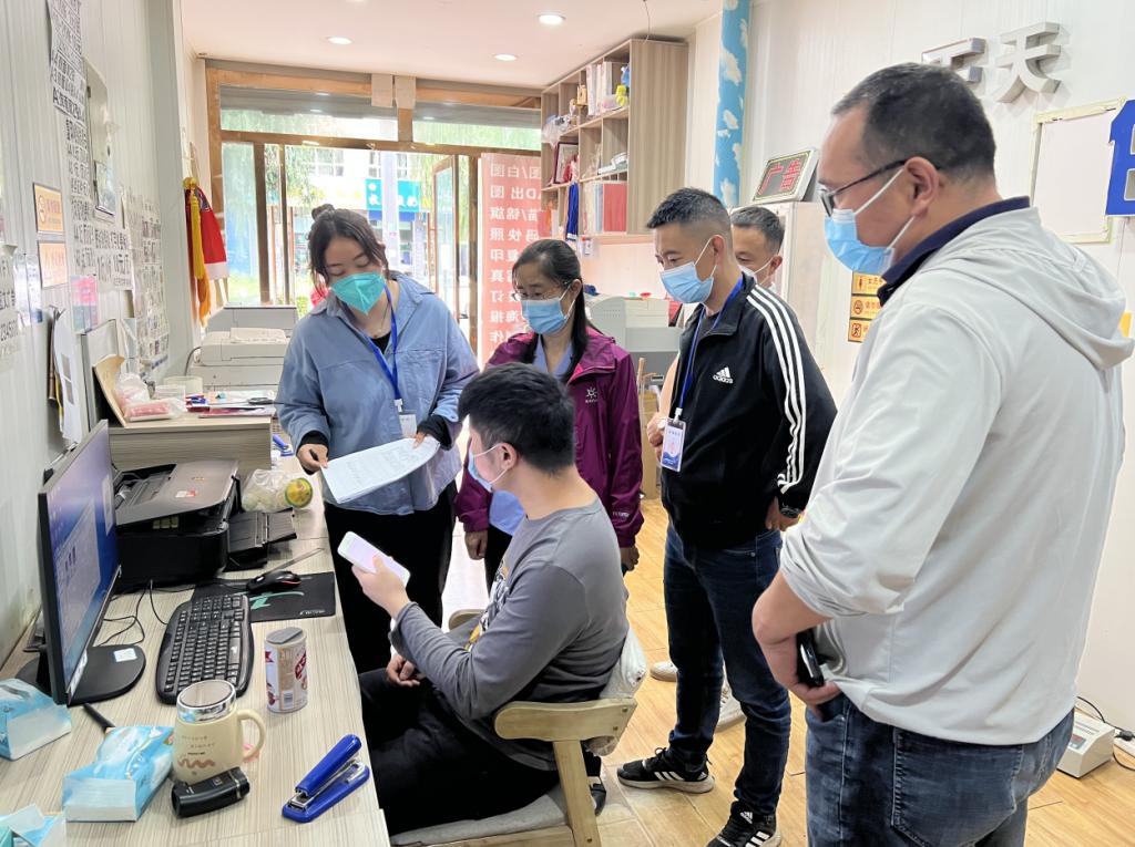 开展督促检查,确保防控工作不留死角。化身督导员,对辖区160余家沿街商铺、宾馆、小区等疫情防控措施落实情况进行督查,检查是否对进出入人员查验双码、外来人员有无登记报备、营业人员是否完成核酸检测;棋牌室等娱乐场所是否关闭等,对检查发现的5起商铺工作人员无故不参加核酸检测问题及时上报并要求及时整改,对辖区60余家居家隔离人员电话核实是否在家、上门检查封条是否损坏,及时将情况反映给社区,确保管控措施落实到位。