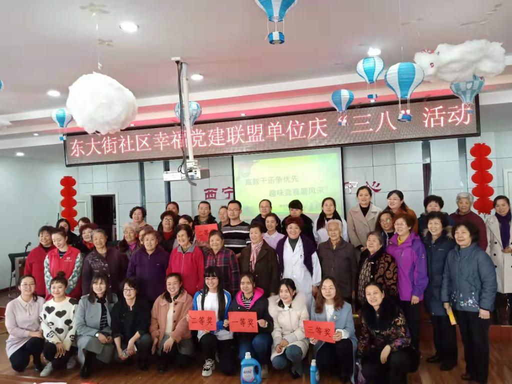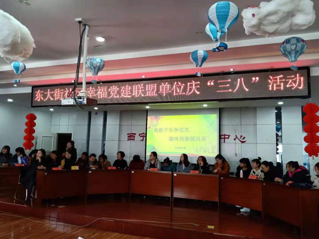 为了提高妇女对自身权益知识的掌握,同时更好的展现巾帼风采,以健康向上,充满活力的精神面貌树立妇女形象,在第109个国际妇女节来临之际,饮马街街道东大街社区党委联合辖区8个“幸福党建”联盟单位以及辖区居民共60余人,开展“寓教于乐争优先,趣味竞赛展风采”为主题的趣味知识竞赛。