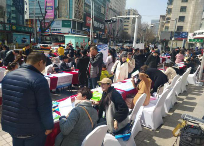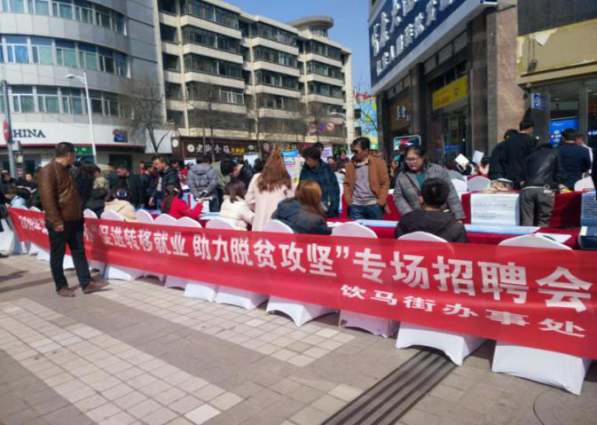 为深入贯彻落实党的十九大精神,积极响应第十三次全国人大会议上政府工作报告中提出的“将就业优先政策置于宏观政策层面,旨在强化各方面重视就业、支持就业导向”的文件精神。结合全省上下关于脱贫攻坚,促进就业的强烈号召,饮马街街道办事处于近日中午在辖区天桥商贸城门前举办了主题为“促进转移就业助力脱贫攻坚”为主题的“2019春风行动”专场招聘会。