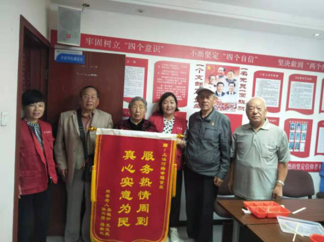 7月28日一大早,饮马街街道上滨河路社区幸福食堂收到了一份特殊的礼物,辖区老人任兴隆、李淑珍、路新权、王三庆送来一幅锦旗,锦旗上绣着“服务热情周到,真心实意为民”既表达出了老人们对上滨河路社区幸福食堂优质服务的感谢,也表达了老人们对政府殷殷关怀的感激。