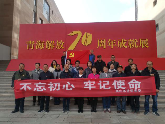 不忘初心、牢记使命,为庆祝新中国成立70周年、青海解放70周年,,深化在职党员“双进双联四服务”活动,近日,南滩街道南山东社区党委组织各支部党员、在职党员联合南滩街道机关党支部党员共同前往青海美术馆开展“不忘入党初心牢记职责使命”主题党日活动,参观“青海解放70周年成就展”。
