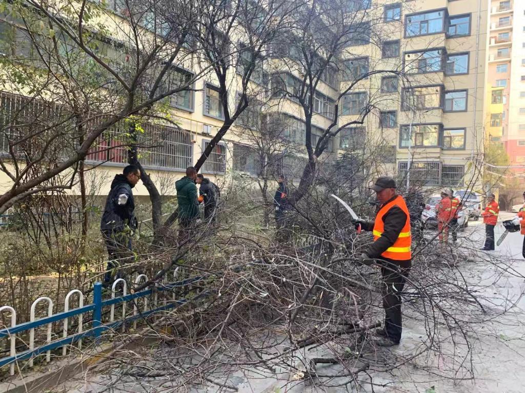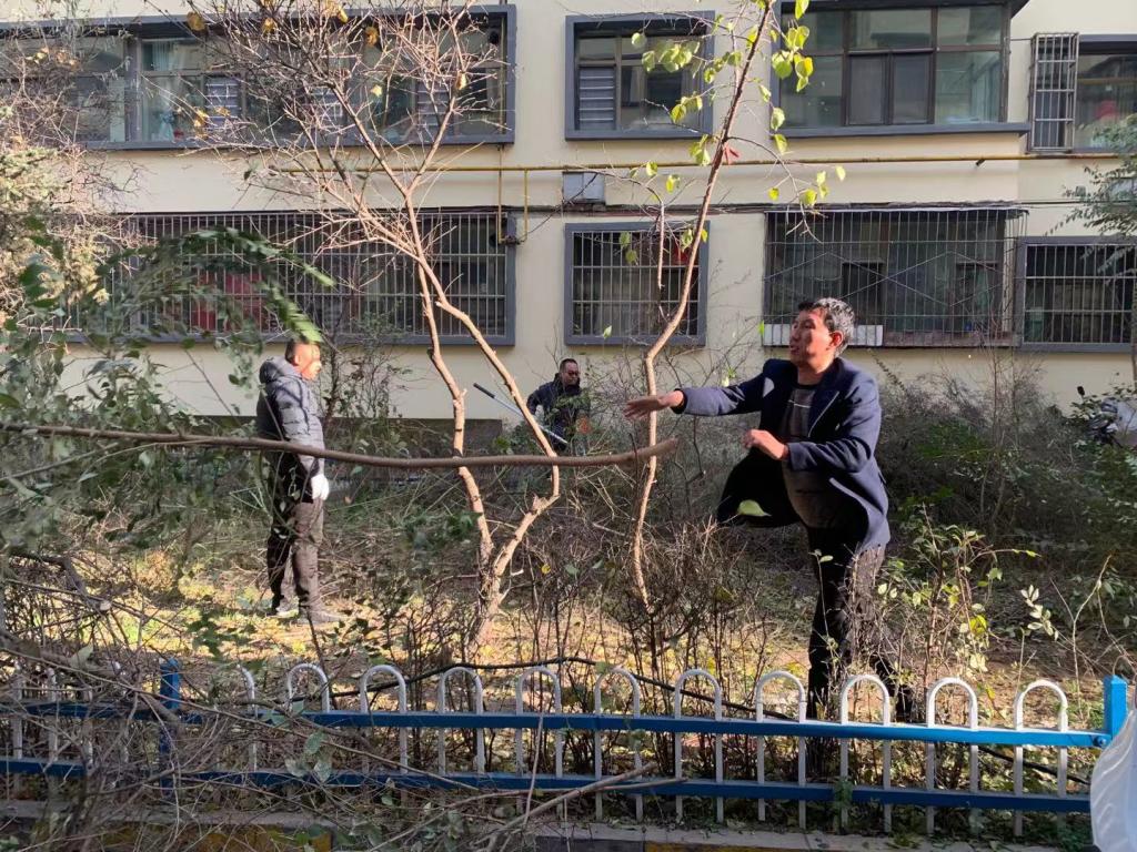 新民街46号小区老旧无人管理楼院,有住户550多户,树多,这不到了冬天干树枝枯树叶多,导致楼院卫生死角比较多,城中区自然资源局党支部得知这一情况后,组织党员带着党徽走进小区,和社区党委共同开展了“行动诠释信仰、担当彰显忠诚”志愿服务活动。