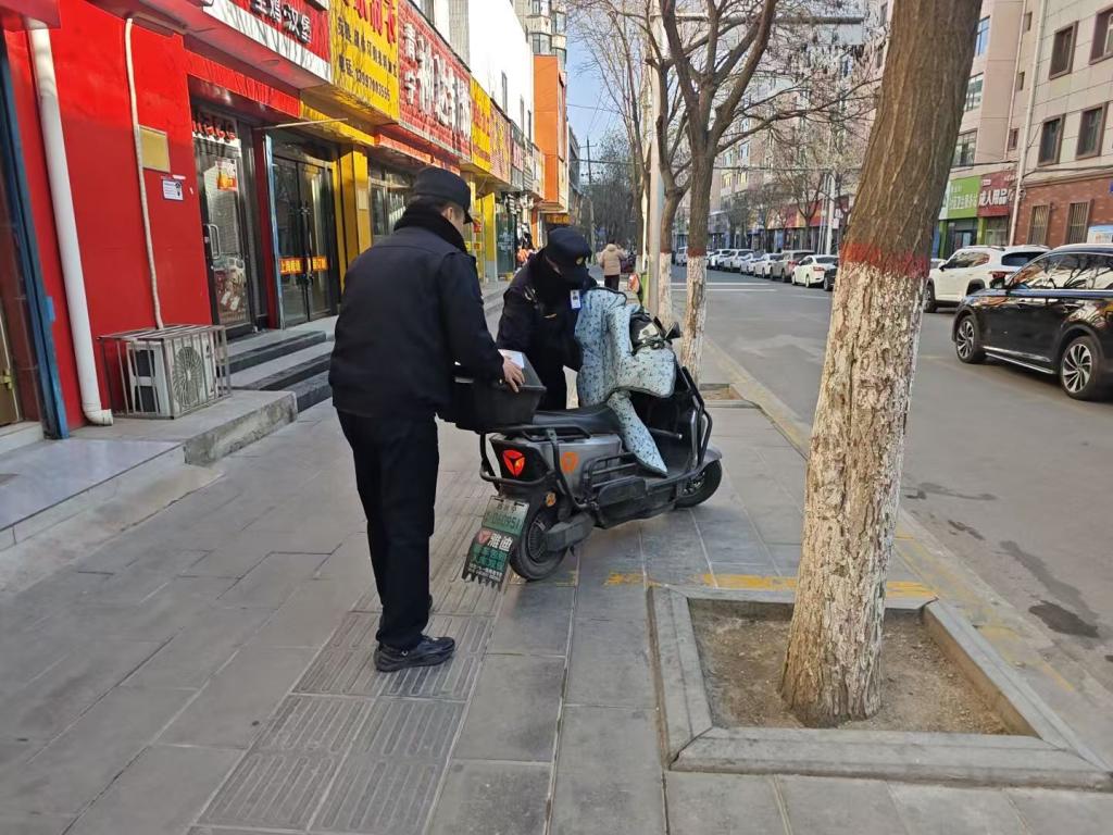 整治过程中,执法人员始终坚持教育引导与依法处置相结合的原则。一方面,通过上门入户向商铺解读停放规范、联合社区网格员与志愿者现场劝导、在醒目位置张贴主题海报,以及借助LED电子大屏、商户门楣电子屏等载体开展全方位宣传,引导市民自觉规范停放非机动车;另一方面,对违规停放且能现场联系到车主的,当场劝导其将车辆移至指定泊位;对占用消防通道、人行道等重点区域且无法联系车主的车辆,依法实施统一拖移;对拒不配合整改的当事人,严格依规予以处罚或暂扣车辆。