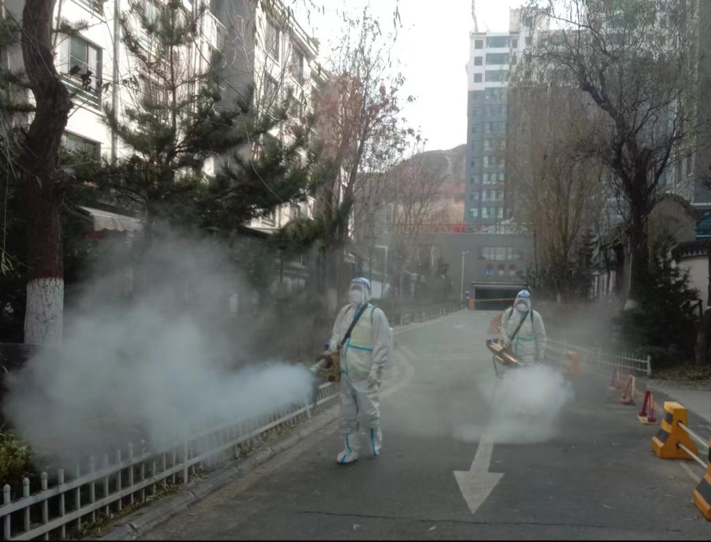 同心协力,助力防疫“安全屏障”。在初冬天气环境的多变情况下加大环境卫生的清扫力度,每天出动保洁员600余人,快速保洁车70辆,清扫车8辆,做好主次干道、人行道、绿化带等机械化清扫和人工精细保洁工作,对路面卫生死角积存杂物进行全面清理,做到死角清理彻底、高标准、严要求的道路清扫保洁。同时,根据市指、区指发布的通告和各镇办提供的相关消杀点位,每天出动人员51人,利用19台肩背式喷雾器、31台弥雾机,对辖区中高风险区、医院周边、农贸市场等重点区域及转运车辆进行全面消杀,夜间利用6辆消杀喷雾车,持续对城区主要大街、背街小巷及重点区域外围进行“全覆盖、无死角”的喷雾消杀,用实际行动筑起疫情防控坚固的防线。
