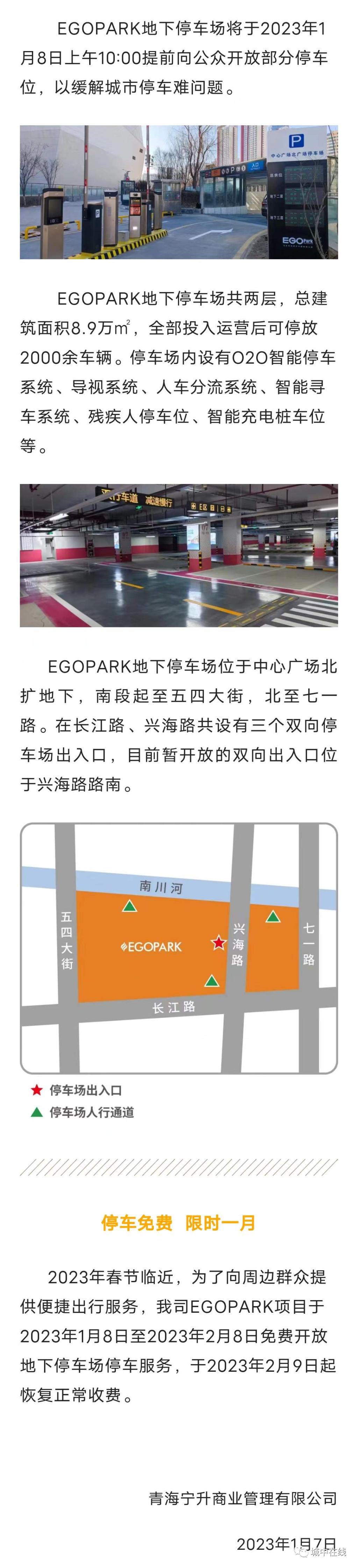 近日,EGOPARK运营方发布公告,正式开放EGOPARK地下停车场,同时免费停车一个月。这意味着城中区新增一处大型停车场,将有效缓解老城区停车难题。公告详情如下: