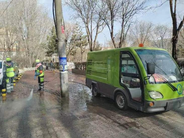 加强卫生死角清洁力度,擦亮卫生整治“名片”。集中对道路死角、背街小巷进行清理。出动高压冲洗车9辆,结合人工进行高频次对城区主次干道、人行道、果皮箱、垃圾桶等进行大清洗及消杀作业。同时对辖区道路护栏、果皮箱、花箱、过街天桥护栏及电梯间、公交站牌等市政公用设施进行污渍、油渍擦洗工作。