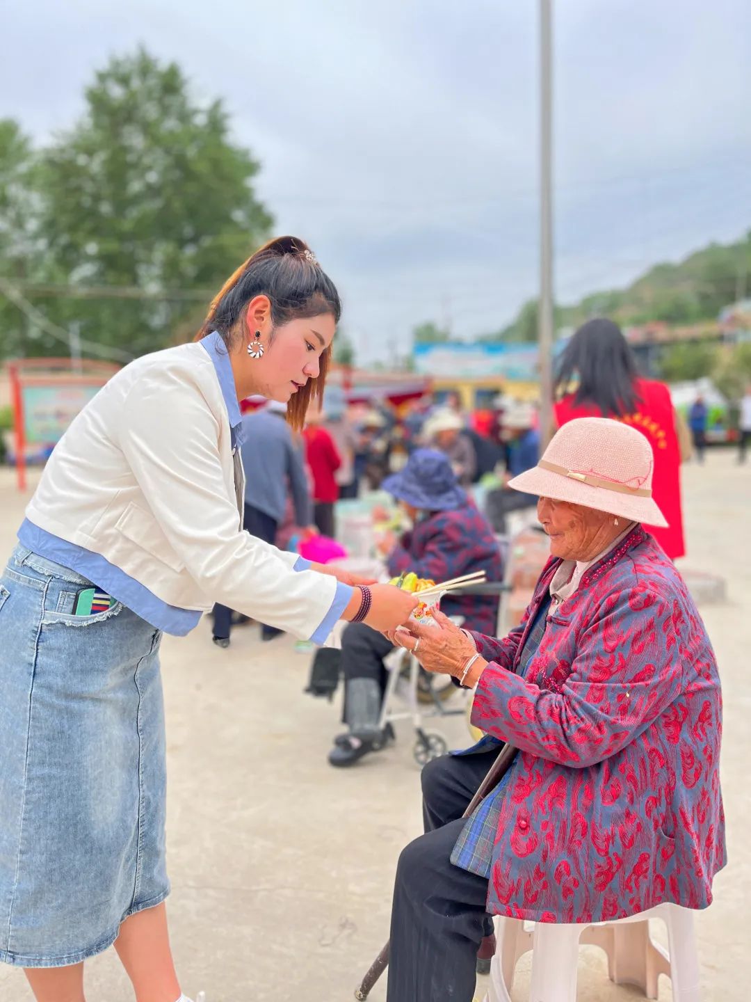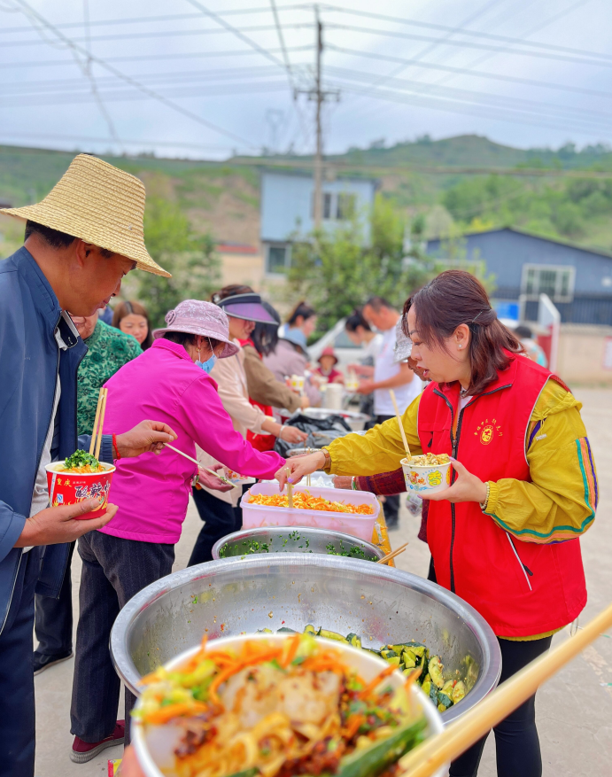 总寨镇新时代文明实践所的工作人员为老人送上凉面。