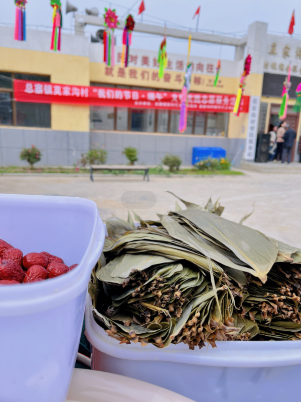 莫家沟村活动现场摆满了粽叶、糯米、白线等做粽子的新鲜食材。