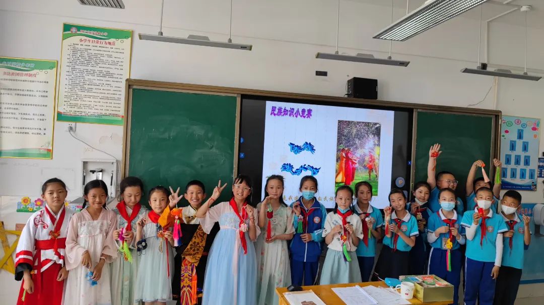水井巷小学开展“端午节”民族知识竞赛活动。图为:同学们开心的展示自己在竞赛问答中获得的香包。