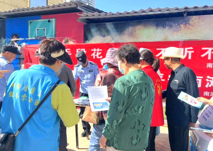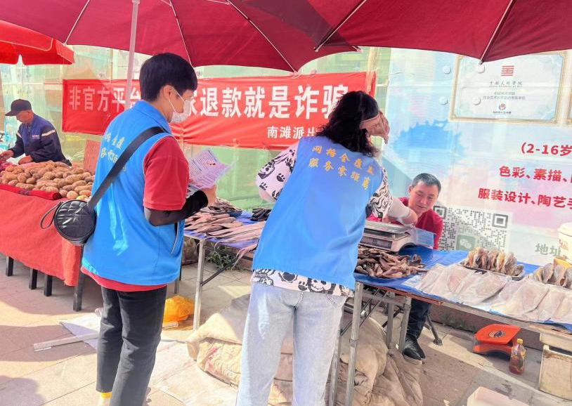 南滩街道综治中心经过对现阶段高发电诈案情和受害群体特征的综合研判,以此为切入点,在南门早市搭起反诈“小摊”,展开“见缝插针”式的宣传,工作人员个个因人施策,为易受骗群体量身打造个性化的反诈“套餐”,实现反诈干货精准“直销”,针对居家中年妇女,工作人员多次提醒她不要刷单、不要轻信网络“高富帅”带她投资理财,以免误入“杀猪盘”骗局;面对触网不深但防范意识不足的老年人,工作人员则耐心普及着“保健品诈骗、低价旅游诈骗、养老服务诈骗”等容易让他们上当受骗的养老诈骗类型,提醒他们一定要守好养老钱。