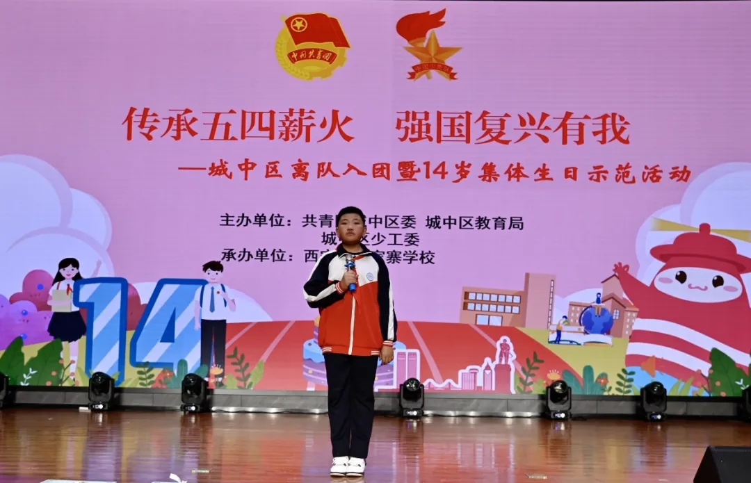 为纪念“五四运动”105周年,教育引导广大青少年厚植爱党、爱国、爱社会主义情感,进一步规范仪式教育、强化党团队一体化育人链条,增强团员、少先队员组织荣誉感和归属感。4月26日上午,共青团城中区委、城中区教育局、城中区少工委在西宁市沈家寨学校举行“传承五四薪火 强国复兴有我”城中区离队入团仪式暨十四岁集体生日示范活动。