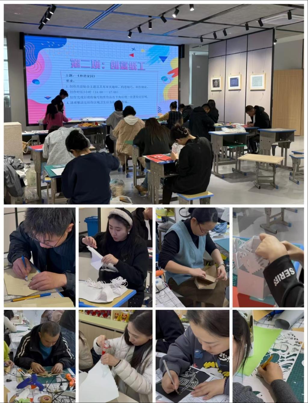 此次大赛的内容为命题创作和创意纸工。比赛分为早上、下午两场。为保证赛事公平公正,赛前所有参赛教师抽取了比赛编号且两项比赛项目均为现场给题。比赛现场紧张激烈,参赛教师们凭借扎实的专业技能和独特的创意思维同场竞技,尽显风采。