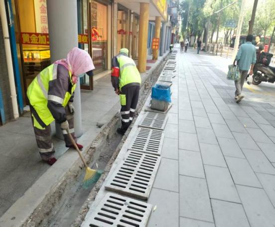 未雨绸缪,筑牢“雨前预防”防线。在“雨前预防”环节,中心提前研判天气预警信息,组织人员对辖区主次干道、背街小巷的雨水篦子进行全面排查疏通,清理周边落叶、杂物等堵塞累计4.5余方,确保排水系统“血脉畅通”。同时检查调试高压冲洗车等作业设备,备足推水板等应急工具,做到“设备待命、人员备勤”。