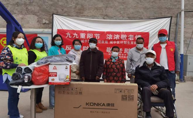 城中区各新时代文明实践所(站)利用“我们的节日——重阳节”,结合“我为群众办实事”,为辖区老党员、孤寡老人、困难群众开展圆梦“微心愿”活动。其中,总寨镇新时代文明实践所联合莫家沟村新时代文明实践站为莫家沟村70周岁以上的老年人送上慰问品。总寨镇金十字社区新时代文明实践站组织联点单位在节日期间走访慰问辖区退役老兵、空巢老人、困难群众等。共青团城中区委员会联合联点社区,为水井巷社区新时代文明实践站辖区3户孤寡老人送去米、油、牛奶等生活必需品。南川西路新时代文明实践所为辖区10户老干部送去米面油等节日慰问品。城中区卫生健康局、城中区计划生育协会深入失独家庭开展重阳节走访慰问活动,为辖区失独老人送去节日的温暖。清华路社区新时代文明实践站联合联点单位西宁隆济大药房举行“关爱环卫工人”主题活动,为辖区50名环卫工人送上口罩、护手霜等暖心礼品。