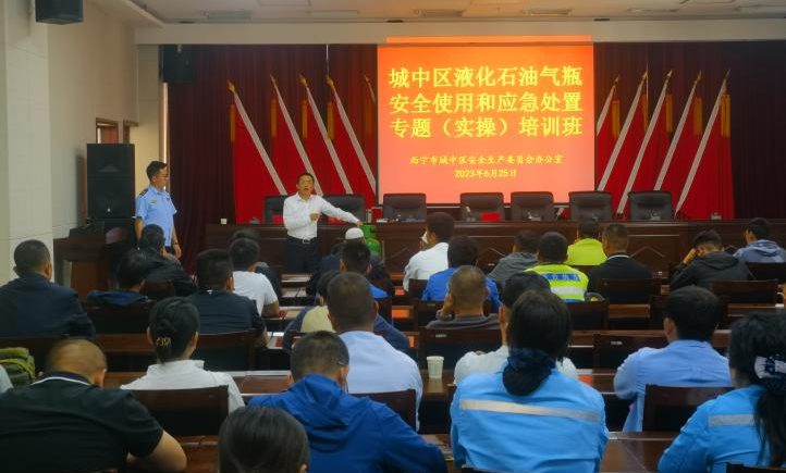 6月25日,城中区安委办组织全区各单位各部门燃气隐患排查人员、燃气经营单位主要负责人和安全生产管理人员、从业人员120余人开展城中区液化石油气瓶安全使用和应急处置专题(实操)培训,通过集中观看燃气安全教育警示片,邀请国家注册安全工程师、青海省燃气专家马晓文老师为参训人员理论授课。马老师就近期宁夏银川兴庆区富洋烧烤店燃气爆炸事故进行了简单分析,通过事例,让大家更直观地了解不安全使用天然气带来的危害。随后着重对餐馆内液化石油气瓶使用要求、管路连接、放置环境及数量、钢瓶本体、安全附件及厨房灶具检查要点、维护保养及隐患处置等进行了详细实操讲解,同时以发生的各类液化气事故为突破口,全方面剖析事故原因及危害,使参训者在学习安全使用知识的同时树牢安全意识,严防此类事故发生。通过此次培训,切实消除了各餐饮经营户在瓶装液化气瓶使用中的麻痹心理,提高了安全隐患自查自改的能力水平及安全用气意识,推动养成良好用气习惯,营造了“人人讲安全 个个会应急”浓厚氛围。