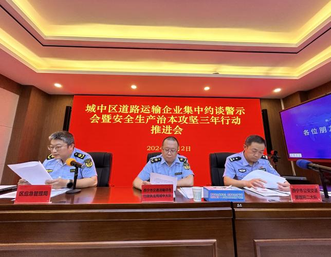 为深入贯彻落实习近平总书记关于安全生产重要指示精神及党中央、国务院决策部署,全面落实省委省政府、市委市政府、区委区政府有关安全生产的工作要求,进一步夯实交通运输安全生产基础,防范遏制辖区道路交通事故。2024年8月2日上午,城中区应急管理局会同西宁市运输综合行政执法局城中大队、西宁市公安交通管理局二大队组织辖区客运企业、驾培企业,南川西路客运站、泰欣出租车行、青海瑞派尔汽车服务有限公司等33家重点道路运输企业主要负责人召开道路运输企业集中警示约谈会暨安全生产治本攻坚三年行动推进会。