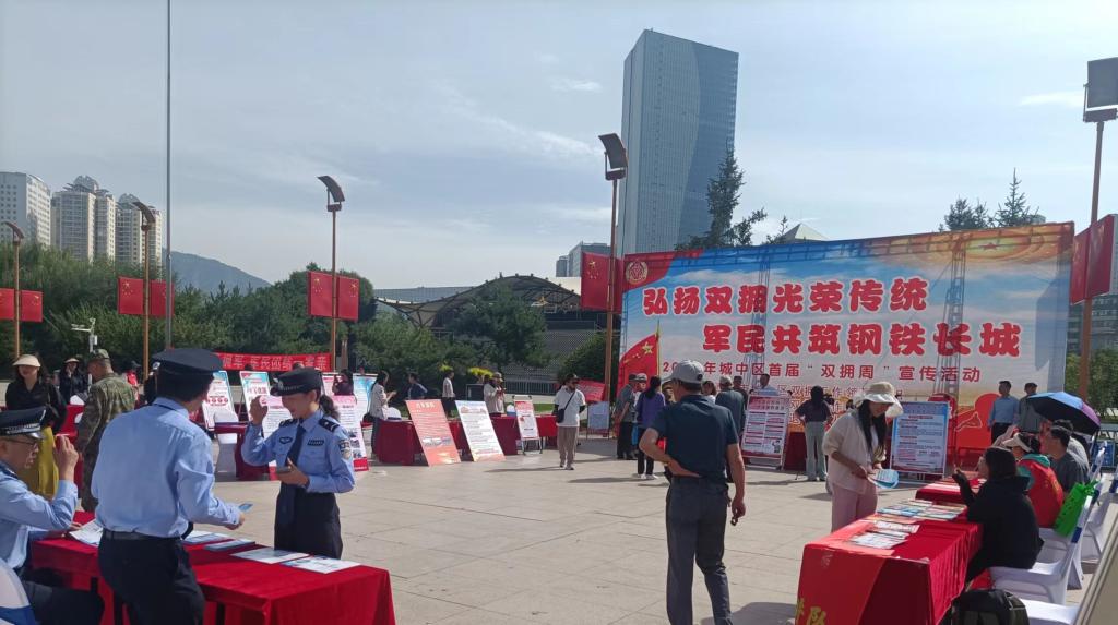 在中国人民解放军建军97周年之际,为进一步弘扬拥军优属、拥政爱民的光荣传统,切实维护军人军属和广大优抚对象的合法权益,8月1日上午,城中区双拥工作领导小组、城中区退役军人事务局组织全区双拥成员单位在中心广场开展“弘扬双拥光荣传统 军民共筑钢铁长城”双拥宣传周集中宣传活动。