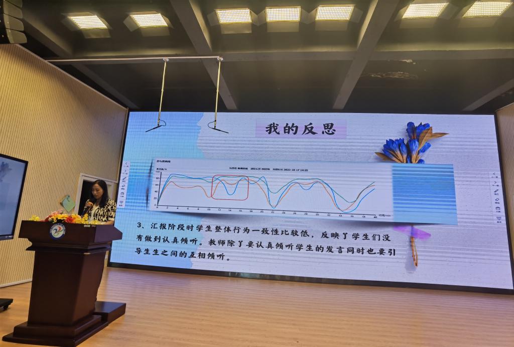 解锁“智课”新技能,激活教学新样态。自2023年9月学校引进智课系统以来,历经一整年的深度实践与探索。部分老师结合具体课例,对可视化、实证化的数据予以分享解读,通过精准反思,针对问题进行重新建构,使得与会老师能够发觉教学差异,探寻最优化的教学行为构成。还有部分老师分享了在跨时空组建的教研小组中的经历,阐述了其与以往听评课的不同之处以及所获得的收获。