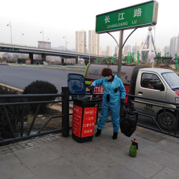现阶段,是预防新型冠状病毒感染的肺炎的关键时期,区市政公用服务中心全体职工及环卫人员仍奋战一线,攻坚克难,齐心协力,抵抗病毒。为防止病毒继续蔓延、传播,区市政公用服务中心在辖区人流量较大的地方安装了76个废弃口罩收集桶,箱体采用醒目的红色背胶纸,喷绘"温馨提示"引导市民积极将废弃口罩投入专用回收箱。