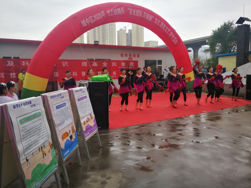 为进一步推进社区科普宣传教育工作,提高社区居民科普知识水平,丰富科普宣传形式,城中区全民科学素质领导小组办公室联合七办一镇借助城中区文化馆主办的“城中区2020年文艺轻骑兵‘百支团队百面旗’文化惠民文艺宣传”演出活动宣传全民科学素质工作,提高社区居民对科学、法律、健康等知识的了解,进一步增强大家学习科学知识的积极性。