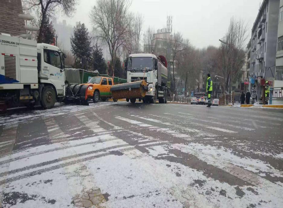 一是共出动3台大型扫雪滚刷车、2台大型雪铲车、1台融雪剂抛洒车辆对辖区主干道开展机械扫雪作业。有效减缓路面积雪为出行市民带来的不便。