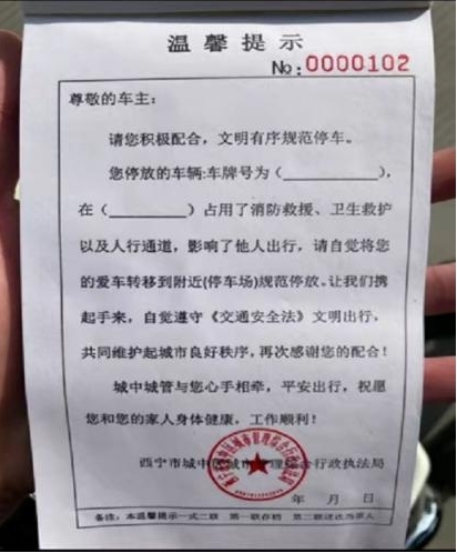 10月下旬以来,受疫情影响,城中区各小区楼院加强车辆出入管控,不准机动车进入小区,导致部分车辆违规停放在城区人行道上。为保障人民群众的出行安全,城中区城管局骑行中队采取温馨劝导的人性化执法方式,变张贴“罚单”为“温馨提示单”,提醒市民尽快开走,对路边违法停放的车辆暂不处罚,受到广大市民纷纷点赞。