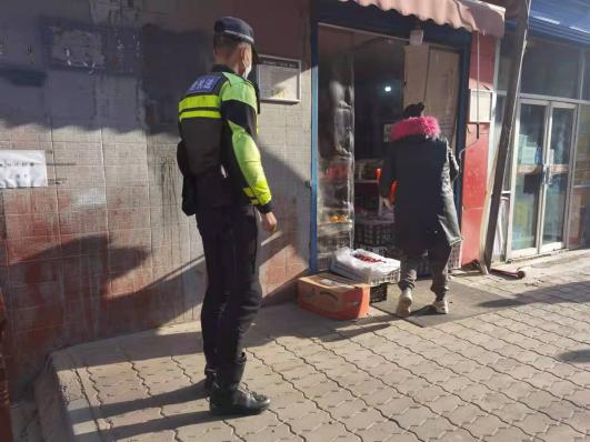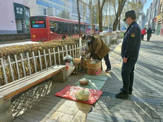 一是认真落实日常巡查,保障一线执法力量,加大对商业广场、医院、各大超市以及市场周边的巡查力度,及时劝离占道经营、流动摊贩等,及时劝导聚集群众,引导全民参与群防群治,切勿放松警惕。二是加强疫情防控宣传,对沿街商户做好疫情宣传工作,督促沿街商户及时消杀、佩戴口罩,并加强通风、定期消毒,保持经营场所良好的环境卫生,做好自我安全防护工作。三是严格落实人员“一米线”的工作要求,督促商户对购物人员进行扫码和体温测量,疏导门前人流,既保证商户正常营业,又确保人员不聚集。四是引导商户出入人流有序,车辆规范停放,个人防护措施到位,保证防疫复工两不误。五是要求商户自觉履行“门前六包”责任,确保责任区的环境卫生整洁,店外无乱堆乱摆,橱窗无乱贴乱挂,做到秩序卫生良好。近日,共清理流动摊贩423起,规范“门前六包”350处。