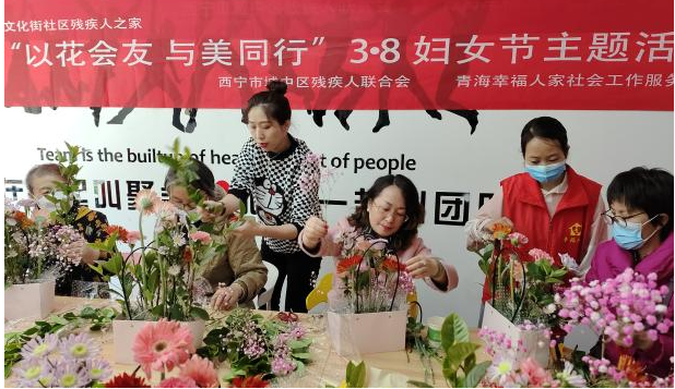 把希望装进花篮里,与春天来一场浪漫邂逅,让女性残疾人感受插花艺术的独特魅力 。在“三八”国际妇女节来临之际,城中区残疾人联合会联合青海幸福人家社会工作服务中心,在文化街社区残疾人之家,为辖区内女性残疾人举办“以花会友,与美同行”3•8妇女节主题活动。