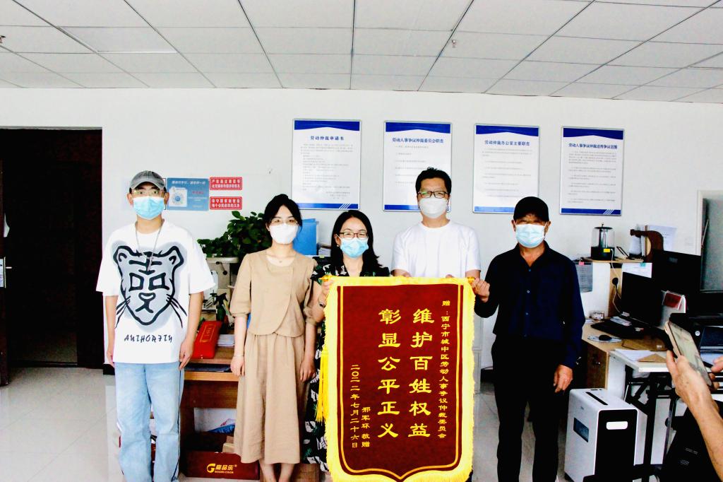 “衷心感谢你们,要不是你们,我的经济补偿金估计要不上了······”在城中区人社局劳动仲裁办公室拿着锦旗的大爷感激地说道。